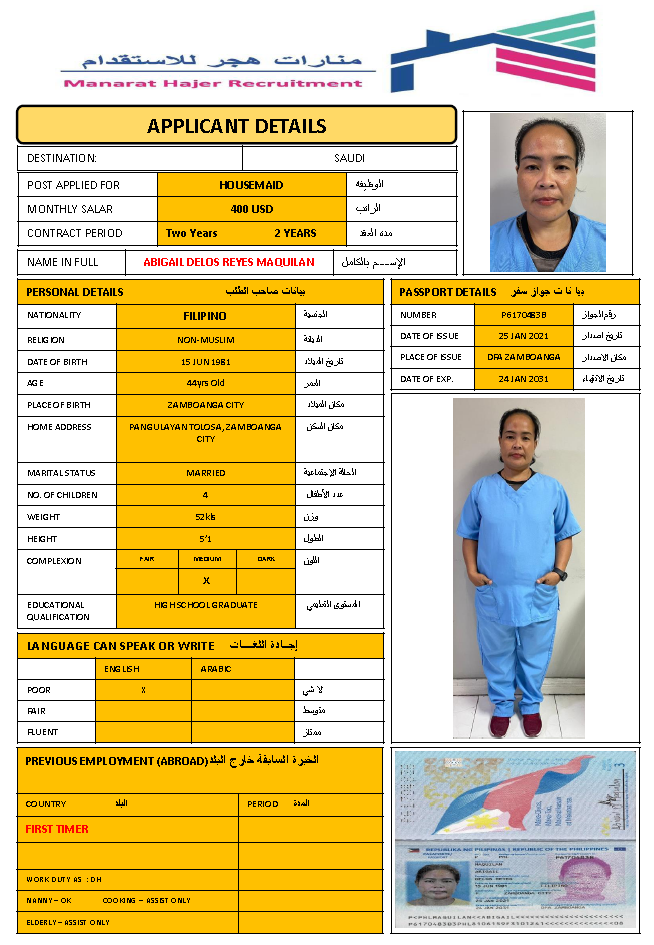 سير ذاتية عاملات فلبينيات بخبرات متنوعة.
